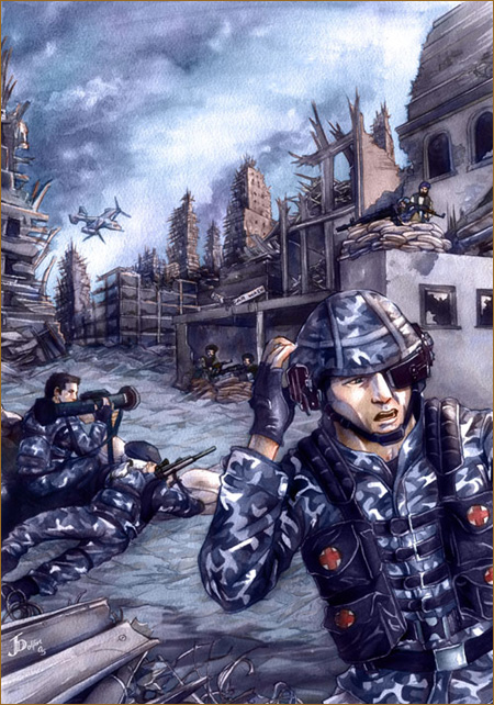A cover for the forthcoming RPG book "Collateral Damage acceptable: Rules of Engagement" from