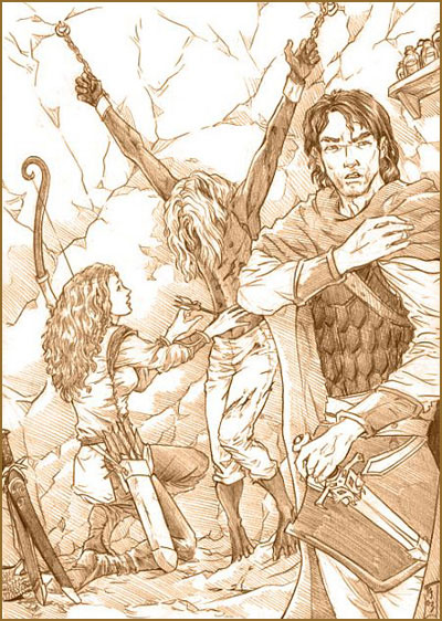 From "Starless Night": Cattie-brie teams up with Artemis Entreri to free Drizzt from the clutches of Matron Baenre.