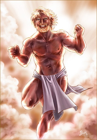 "But in the midst of the war a spirit of great strength and hardihood came to the aid of the Valar, hearing in the far heaven that there was a war in the Little Kingdom; and Arda was filled with the sound of his laughter. So came Tulkas the Strong, whose anger passes like a mightly wind, scattering clouds and darkness before it, and Melkor fled before his wrath and his laughter."